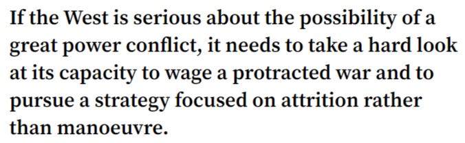 The West continues thinking long attritional wars are an exception rather than the rule in near-peer conflicts.